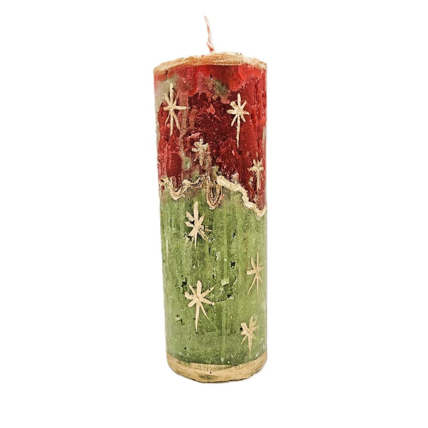 VELA CILINDRO 19X6CM VERDE/VERMELHO E OURO